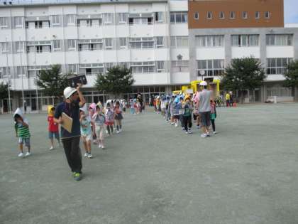 今日の避難訓練は、地震を想定した訓練でした。緊急放送の後避難開始となり、校庭で待っていましたが、あまりにも静かで、放送が聞こえたのか不安になるほどでした。みんなおしゃべり一つしないで、本当に静かに避難していました。