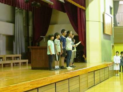 大きな中学生を前に最初は緊張していた様子でしたが、いざ舞台に立つと、みんな堂々とした様子でお知らせを伝えることができていました。子どもたちにとっては、中学校の雰囲気を感じたり、大勢の前で話をしたりする、よい経験になったのではないでしょうか。ぜひ中学生にも、「ワンダーランド学芸会」を見に来てほしいですね。