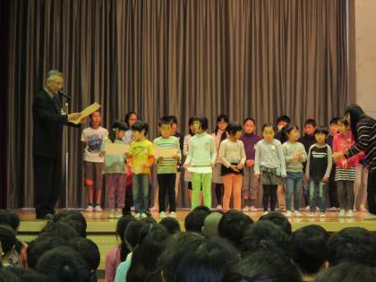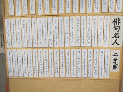 2学期の俳句名人が12月1日に表彰されました。短冊に書き、昇降口に掲示してあります。京西小学校からは毎年NHK全国俳句大会ジュニアの部や伊藤園の俳句に入選しています。楽しみながら言葉のリズムや表現を身につけていってもらいたいと願っています。〈校長 箭内〉