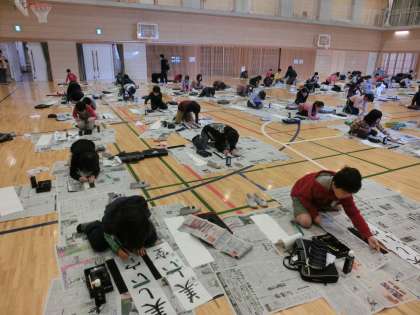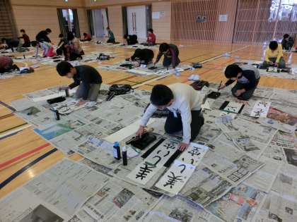 10日(土)3・4校時に体育館で書き初め大会をしました。