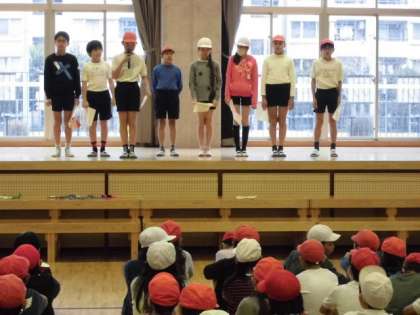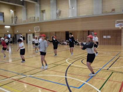 4時間目に体育館で縄跳び大会を行いました。全員が10種目の中から1種目を選び、みんなの前で技を披露しました。ハヤブサ・交互二重などは、見ている人から「すごい!」と言う声が聞かれました。どの子も一生懸命に跳んでいる態度は、見ていて感動的でした。会の進行は、実行委員の人たちが担当しました。6年生に向けて頑張っています。