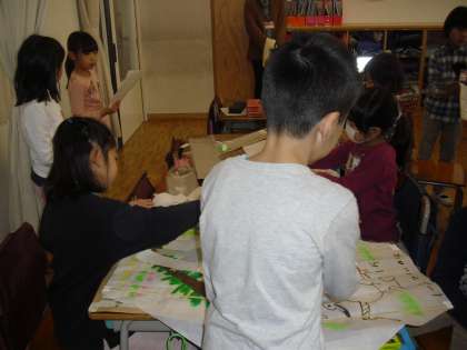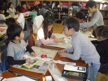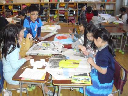 1月20日5校時 2年生が1年生の凧作りのお手伝いをしました。