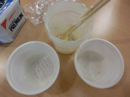 授業の後半は、生クリームを使ってバター作りに挑戦しました。