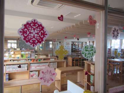 2月になりました。図書室の装飾が2月らしく変身しました。京西文庫プロジェクトのみなさん毎月毎月ありがとうございます。2月は節分です。鬼と豆まきの飾りの中に入っています。全校朝会で「家で豆まきをしてください」と話しました。3日の日、私も自宅で豆まきをしました。〈校長 箭内〉