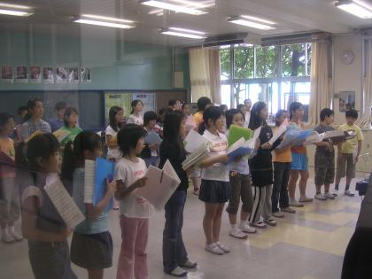 20年度の合唱団の活動がスタートしました。基本の発声練習は、6年生を中心に自主的に行っています。