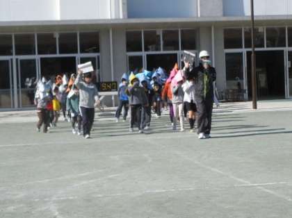 訓練とはいえ、自分の命を守るための大事なものです。今日は、電気が使えなくなって放送機器が使えなくても、しっかり指示を聞いて静かに落ち着いて避難することの大切さを学ぶことができたと思います。