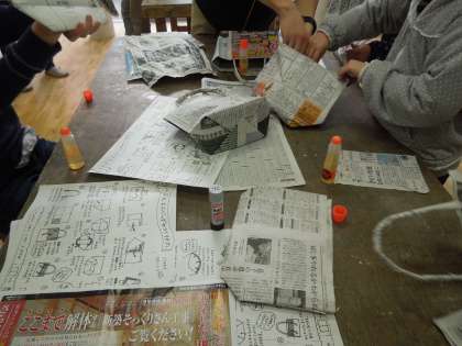 2月14日 このゆびとまれ 新聞紙エコバックづくり(先生企画)