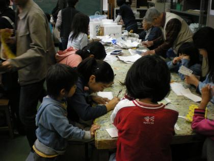 母の日目前の5月10日。雨にもかかわらず多くの子どもたちが集まりました。地域や保護者の方々のご指導の元、母の日カード作りが始まりました。