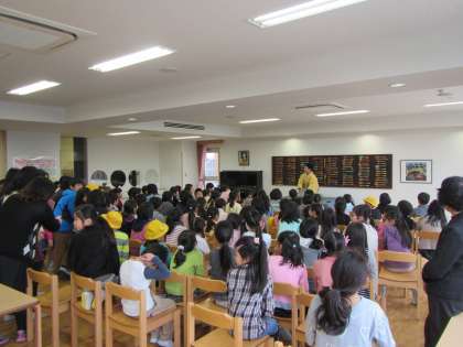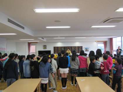 今日から5日間、落語クラブの発表会があります。多目的室で行います。初日の幕開けは部長の登場です。着物にはかまを身につけています。熱演に子供たちの笑い声が響きます。客席にはたくさんの子供たちが詰めかけています。立ち見まで出ています。京西の落語クラブ出身者がテレビに出演したりしているのです。