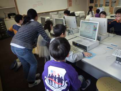 6年生が、1年生にパソコン室の使い方を教えました。電源の入れ方を教えた後は、絵を描くソフトで好きな絵を描きました。パソコンを待つ間は、図書室で6年生が本を読み聞かせしました。楽しそうな1年生のみんなと、その様子を見てうれしそうな6年生の姿がほほえましかったです。