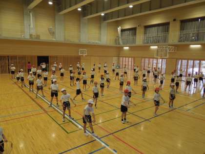 今年度の運動会で、4年生は「花笠音頭」を行います。練習1日目は、山形県から本場の講師を招き、2時間みっちり指導をしていただきました。