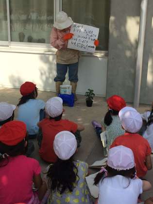 昨年度もお世話になった講師の先生に、ミニトマトの植え方を教わりました。