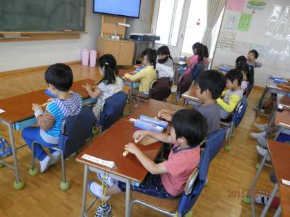 今、1年生の算数では、「いくつといくつ」の学習をしています。子どもたちは自分で算数ブロックを操作しながら一生懸命考えていました。「7は3と4です。」「7は1と6です。」など自分の考えたことを発表したり友達の考えを聞いたりしました。算数の学習の中で考える力を身に付けていけたらと思います。