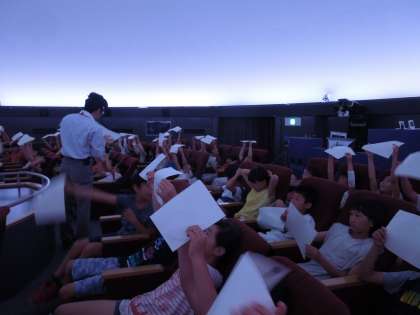 プラネタリウムでは、世界最高級の投影機で、太陽・月・星の学習を行いました。太陽の動き方など、3年生の復習から始まり、4年生で学習する、月の満ち欠けや星座の観察までを指導員の方のお話を交えて教えていただきました。