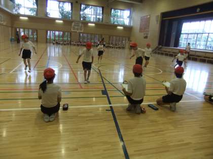 1年生のシャトルランをお手伝いしました。一生懸命に走る1年生を応援する6年生という、ほほえましい光景をみることができました。今週はその他のスポーツテストもお手伝いします。
