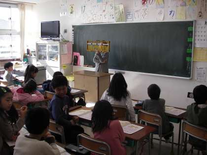 3年生は「そろばん」の授業です。講師の先生が今日と明日来てくださいます。本当にそろばんの基礎的なことから教えてくださっていました。ですから子どもたちも集中して聴いていました。