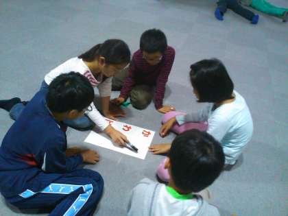 ハイキングが終わって、村の会堂で「あいうえお作文」に挑戦しました。