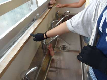 汚れているところに目を向け、普段はなかなかできないところの掃除を行いました。グループごとに工夫をして行い、「すっきりした」「きれいになって気持ちがいい」という達成感や充実感を味わうことができました。この経験を日々の掃除に活かしていってほしいと願っています。