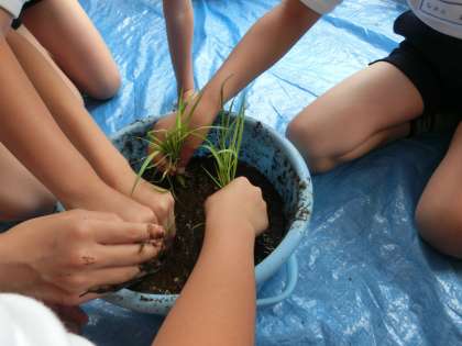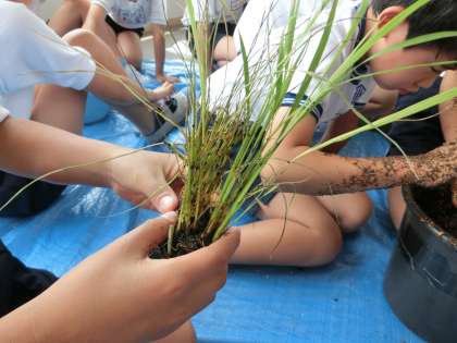 実際に、バケツで稲を育てます。