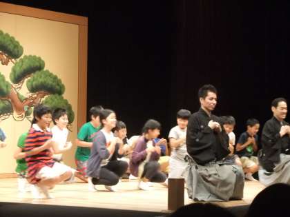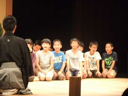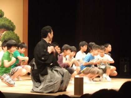 狂言の鑑賞をしに玉川区民会館へ行きました。ワークショップで4名が舞台に上がり、狂言の言い回しや特徴的な動きを教えていただきました。第二部では、実際に狂言を鑑賞しました。子どもたちは、遠く感じていた狂言を身近に感じることができたようです。