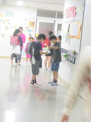昨日から1年生があいさつ当番を始めています。6年生と一緒に元気にあいさつの声を響かせています。雨でじめじめした日ですが、あいさつの声が学校を元気にさせてくれます。