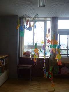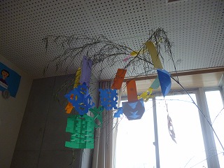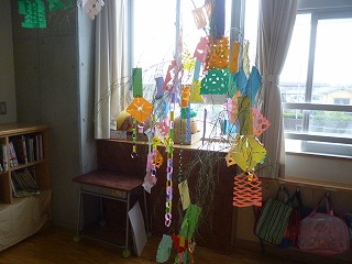 1年生は、いただいた笹に短冊と飾りをつけ、七夕を迎えました。