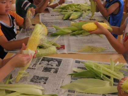 栄養士の先生からはとうもろこしのひげの部分についてのクイズを出してもらい、新しい発見に笑顔があふれました。