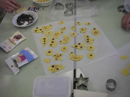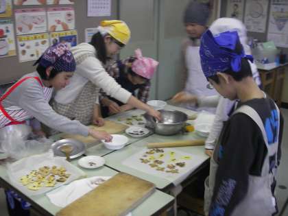 6年生は、いまクッキー作りです。よい香りに誘われて家庭科室に行くと6年生がクッキーを作っていました。なかなか上手に出来上がっています。