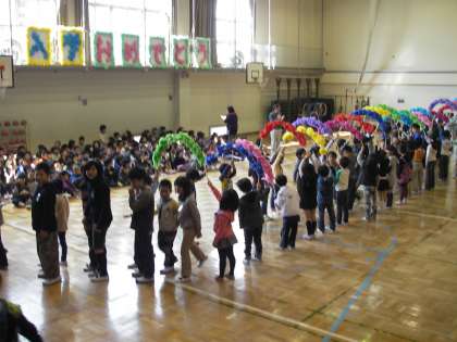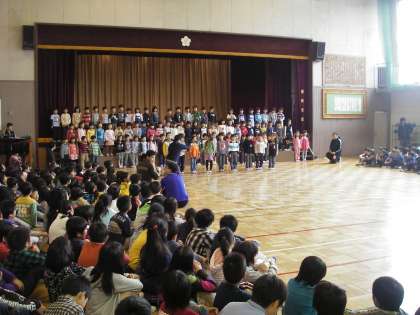 19日の1校時は「一年生を迎える会」でした。今年も小さな、かわいい1年生が京西小学校にきてくれました。高学年のお兄さん、お姉さんに手をつながれて入場です。2年生からのプレゼント、6年生の学校紹介(やくそくごと紹介)、3、4年生の出し物等があり、最後は京西さくら組を全員合唱しました。京西小の6年生、5年生は低学年にとても親切です。