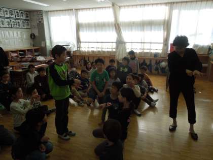 通訳なしでいきなり手話だけによるコミュニケーションが始まるという導入から始まり、音が聞こえない方々が日ごろ困っていることを想像したり、自己紹介の仕方を教わったりしました。各クラス1時間でしたが、とても楽しそうに体験をしました。