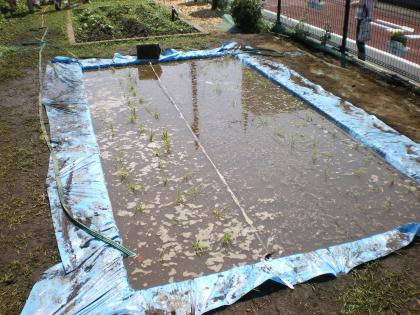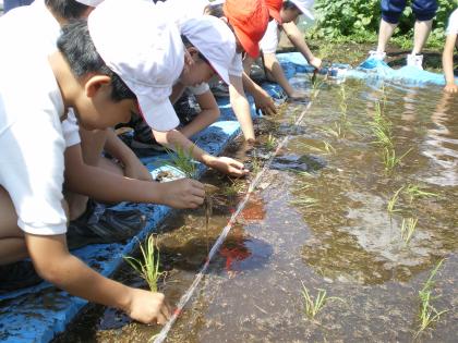 今日の1時間目、学級園に作った田んぼで田植えを行いました。5月に経験しているだけあって、慣れた手つきで行っていました。少しの量ですが、自分たちの手で作った田んぼでの収かく、とても楽しみです。