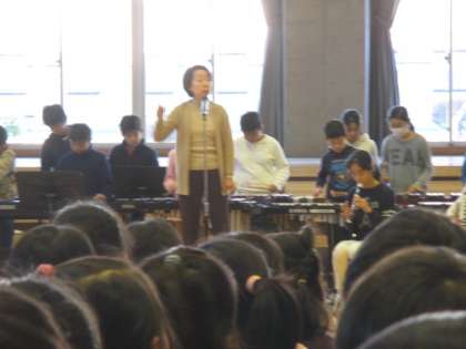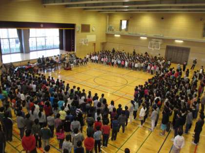 今朝は、音楽集会でした。歌は「この星に生まれて」という歌で、2部合唱です。