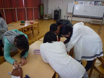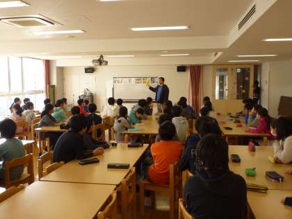 「私の好きな○○」について学習しました。色、食べ物、スポーツ、音楽など、自分の好きなものを紹介する表現を学習しました。最後には、インタビューし合ってビンゴゲームをしました。楽しそうに活動していました。