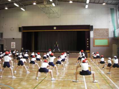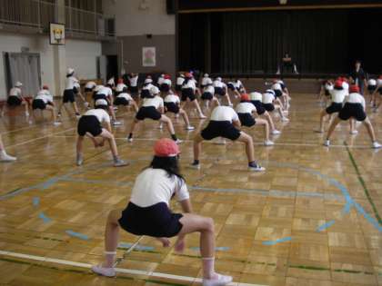 10日(月)体育館では5年生が運動会に向けて練習に取り組んでいました。