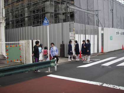 街の角々には保護者の方、地域の方々がたって子どもたちや道行く人にあいさつをしてくださっています。
