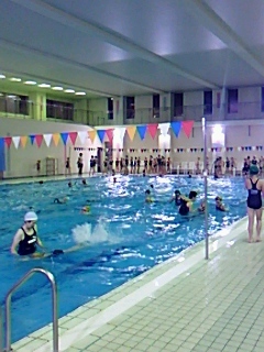 今日は3年生、4年生のプール2回目です。前回では25メートルを80回も泳いだよ、という人がいました。今日も皆、楽しそうに頑張っています。25メートルをばた足で一生懸命泳いでいる姿は見ている方にも元気を与えてくれています。