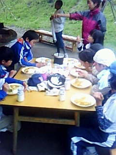 飯ごう炊飯、カレーライスは全員成功したようです。いただきまあう。
