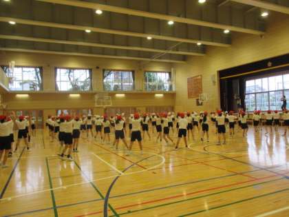 今日は一日雨した。でも、運動会の練習は休みなしに進んでいます。校庭は使えませんが、体育館でしっかり練習に励んでいます。