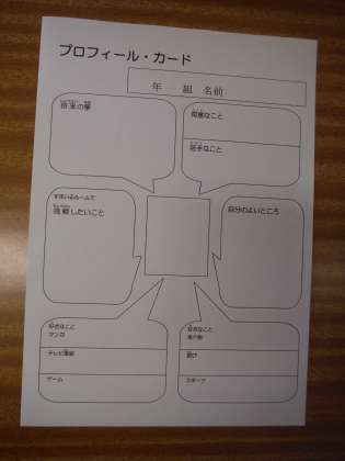 すまいるルームでは、年度始めや学期始めに「プロフィールカード(じこしょうかいカード)」に取り組みます。「自分の得意なこと」や「よさ」、「すまいるルームで挑戦したいこと」などについて、自分をふり返って書いたり、先生と話をしたりします。自己理解や自分の思いを話すことがねらいです。