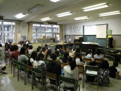 音楽室をのぞくとたくさんの子どもたちが集まっていました。50人近くいました。これから、素敵な歌声を響かせてください。期待しています。