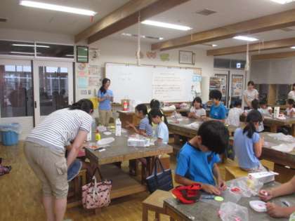 今日は3〜6年生によるミニチュアンインエッグでした。耳などの細かいパーツを紙粘土で丁寧に作っています。かわいらしい作品ができあがりました。