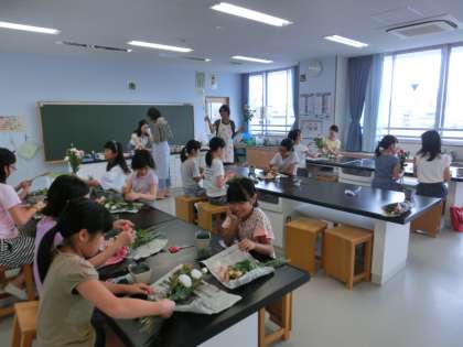 理科室では、フラワーアレンジメントが行われています。