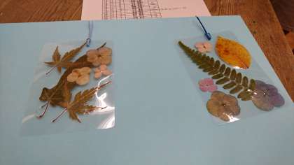 ラミネートシートを使って、木の葉のしおりを作りました。子どもたちは大小2種類のしおりを作り、どれも個性的で素敵な作品に仕上がりました。
