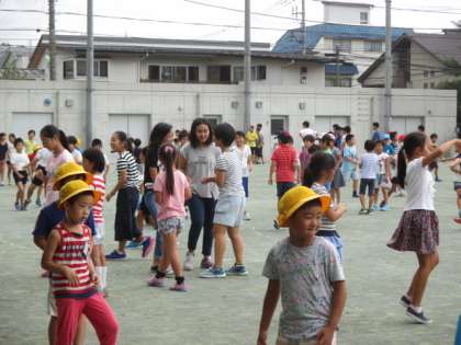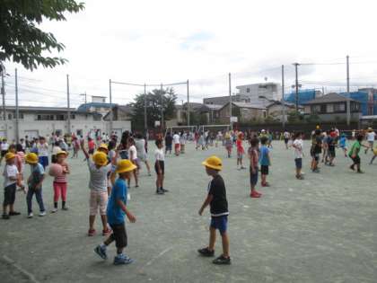 熱帯低気圧が近づいていますが、中休みは雨が降っていなかったので、みんな校庭に出て元気よく遊んでいます。校庭は子どもたちで大賑わいです。