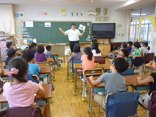 2学期の英語の学習が始まりました。今回はスポーツの名前について学習しました。ALTの先生の発音を聞いて真似したり、ゲームをしたりしながら、楽しく英語に親しんでいます。