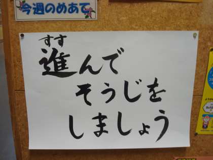 それを受けて今週の目標は「進んで掃除をしましょう」になりました。「進んで」掃除をするということがどのようなことなのか、考えながら掃除に取り組みましょう、と当番の先生からお話がありました。