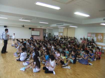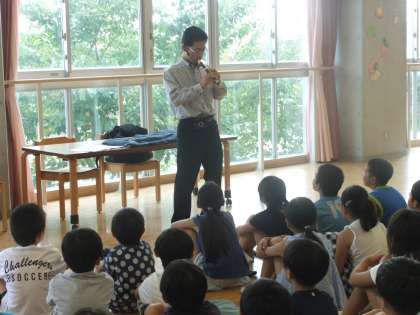 リコーダー協会から講師を招きました。リコーダーの演奏やコツを楽しく教えて頂きました。プロの演奏を生で聞き、子どもたちはとてもよろこんでいました。教えて頂いたことを生かしてこれからリコーダーに取り組んでいきます。