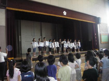 今日、終業式のあと、子どもたちから、ファミリースタンプが3834枚集まったことが報告されました。2学期に花などの植物を購入できますとのことでした。