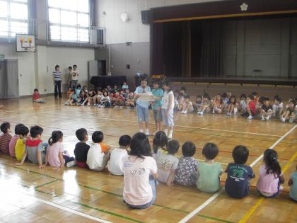 7月16日(水)2校時、ふじみ保育園の子どもたちが京西小学校に来てくれました。