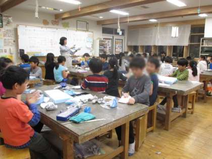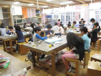 「わくわく楽しい仲間」の授業で指人形作りをしています。まずは、頭作りです。みんな集中して取り組んでいます。